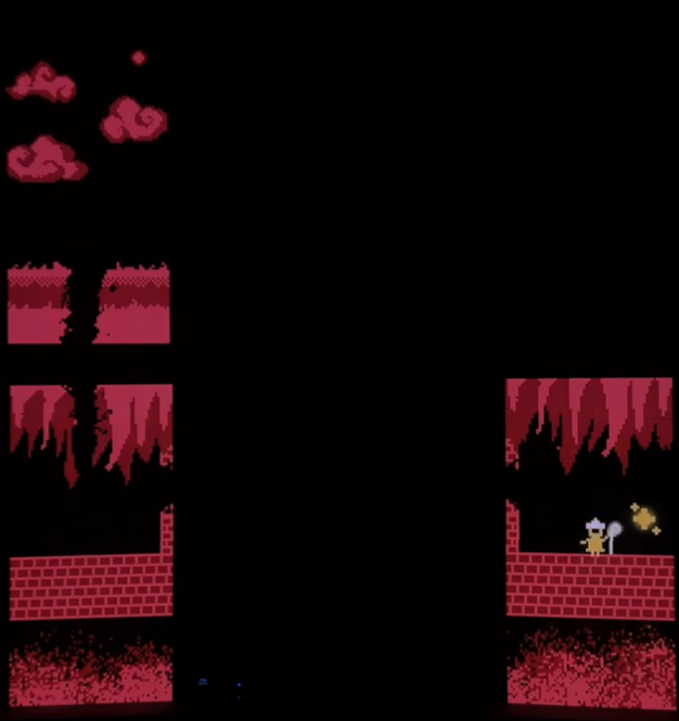 Three LED screens glow in the dark, each carrying a rough, pixelated fragment of a tale. Together, they follow an over-powerful witch wandering through an echoing cave, chasing a treasure she can almost feel but never fully see. The story splinters across the three panels, inviting viewers to move, listen, and gather the pieces themselves. A 360° soundscape wraps around the room,footsteps, whispers, distant rumble. pulling the audience deeper into her search. Created and projected through TouchDesigner, the installation becomes a small myth told in shifting pixels and circling sound.